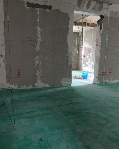 今天P-C放樣,跟項(xiàng)目經(jīng)理和設(shè)計(jì)師約好下午1點(diǎn)半見面,因?yàn)樵缟显谛^(qū)旁邊有事,所以就順便先來(lái)踩個(gè)點(diǎn)。整個(gè)房間打掃的很干凈,地保已經(jīng)刷上,圖紙上如下信息都已經(jīng)明確標(biāo)出:
